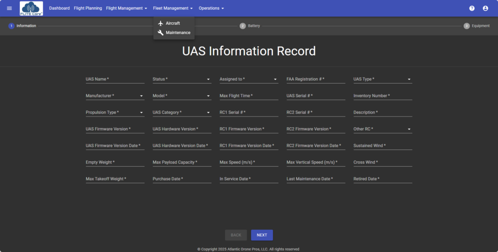 Since the AI is monitoring all of the active systems during flight, plus recording total flight times for each maj0r component such as motors, propellors, landing gear, servos etc., it is an inherent fleet management program. You pay nothing extra for this capability.